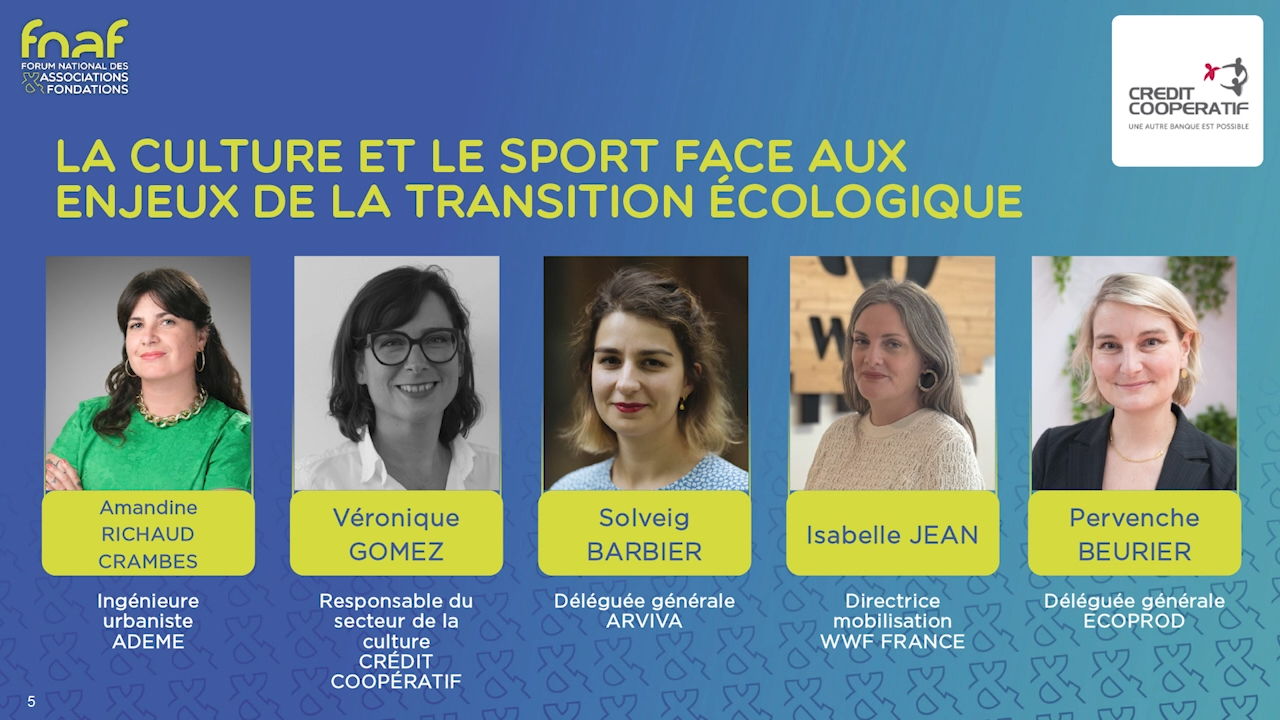 Comment les secteurs du sport et de la culture, moteurs de lien social et d'imaginaire collectif, peuvent-ils se transformer pour répondre aux défis climatiques ? Quels leviers d'action et quelles inspirations pour concilier l'exigence écologique et la dynamique artistique ou sportive ?