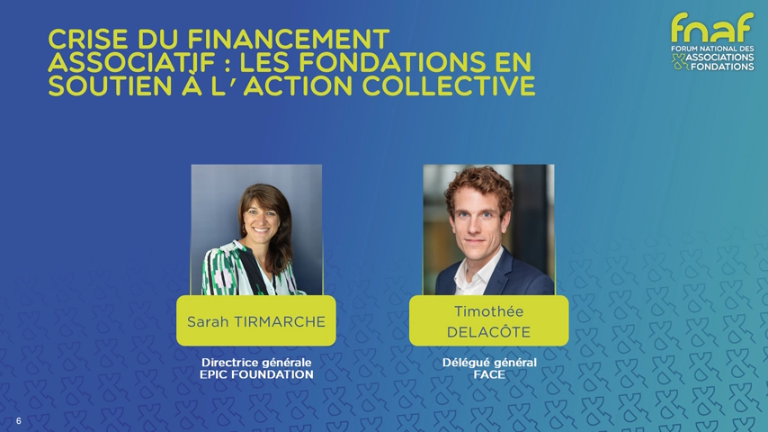 Dans un contexte de raréfaction des ressources et de montée des besoins sociaux, comment les fondations peuvent-elles renforcer et accompagner les associations dans leurs missions ? Avec la Fondation EPIC et la Fondation FACE, nous explorerons les nouvelles formes de coopération, de financement et d’impact collectif au service de l’intérêt général.