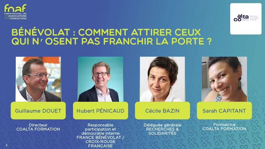 La France Bénévole 2025 souligne que la fracture associative s’accentue : les moins diplômés s’engagent moins, alors même que beaucoup d’associations manquent de bénévoles. Comment lever ces freins pour élargir l’engagement et ouvrir les portes à toutes et tous ? Et comment mieux accueillir aussi les publics souvent laissés de côté, comme les personnes en situation de handicap ou celles moins insérées socialement ?